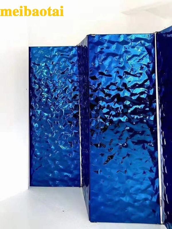 通常の金属波形シートの表面は平らであり、屈折させたイメージはまた均一および均一である。しかし金属板がハンマーによって打たれれば、表面は不均等になり、屈折させた映像は視覚三次元効果を示すことができる。異なった打楽器方法によって、金属水さざ波シートは3つの部門に分けることができる:大きい水さざ波、小さい水さざ波および水スケール パターン。水さざ波の表面の治療法は明るいが、金ブラシをかけられて、ばら色の金、黒いチタニウム、シャンペンの金およびサファイアの青含まれている。